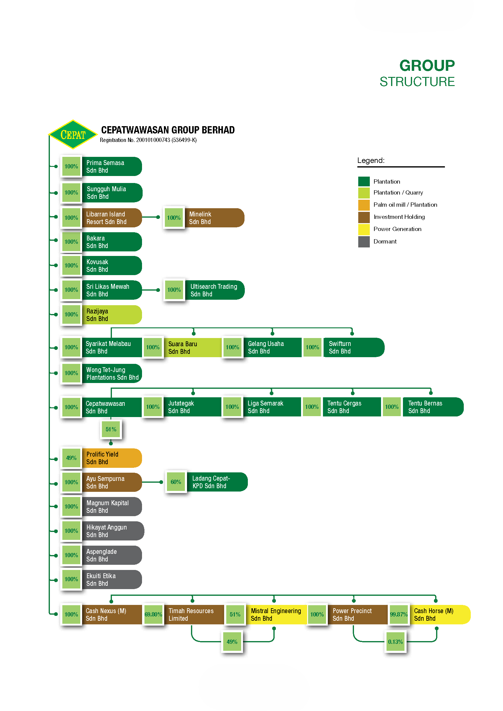 Cepatwawasan Group Berhad (“CGB”) is an investment holding company with its subsidiaries principally involved in oil palm cultivation, milling, quarrying and sales of oil palm products.